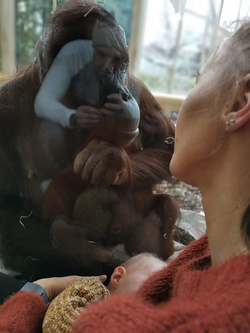 Am vizitat Grădina Zoologică Schoenbrunn din Viena în timpul unei mini-vacanțe cu partenerul meu și cu fiul meu. La un moment dat, ne-am strecurat să vedem urangutanii care se jucau fericiți și m-am apropiat de fereastră pentru a-i vedea de-aproape, m-am așezat pe jos, lângă fereastră astfel încât băiețelul să poată vedea urangutanul aflat la 2 metri distanță. Urangutanul s-a ridicat,, a luat o bucată de pânză spre fereastră și s-a așezat lângă mine. S-a uitat direct în ochii mei, apoi a ridicat mâna, ca și cum ar fi vrut să îmi atingă fiul. Eram deja uimită de această creatură frumoasă.