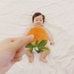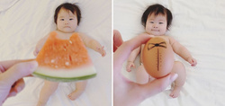 În fiecare zi, timp de două săptămâni, şi-a îmbrăcat bebeluşul în alimente, după care l-a fotografiat şi a postat imaginile pe pagina ei de socializare, spre deliciul internauţilor.