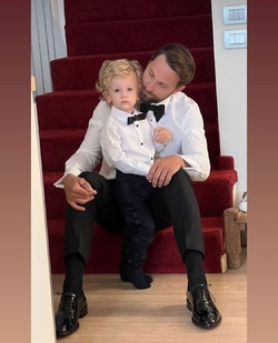 Tiago, băiețelul cuplului, a fost cavalerul de onoare și a purtat la eveniment un costum negru, cu cămașă albă și papion.