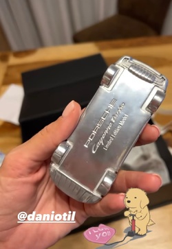 Gabriela și-a despachetat cadoul împreună cu băiețelul ei, moment filmat de Dani și postat pe Instagram. Într-o cutie de cadou mai mare se afla o altă cutie mai mică, iar în cutia mai mică se afla o mașină de jucărie.