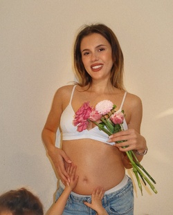 „Nu sunt obișnuită cu genul ăsta de situație. La Amedea și la Damian nu am avut genul acesta de problemă, dar am întâmpinat niște sângerări. M-am speriat groaznic, combinate cu niște dureri de burtă. Slavă Domnului! Am înțeles că totul e bine, e relativ OK. 2 din 3 femei se confruntă cu situații de genul ăsta, la începutul sarcinii”, a povestit ea.
