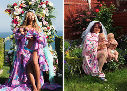 Drept "răsplată", mămicile din lumea întreagă au parodiat imaginea celebră, pozându-se şi ele cu gemenii, în ipostaze reale, mai puţin spectaculoase şi fascinante. Cea care a dat tonul este o irlandeză pe numele Sharon Kellaway, care locuieşte în California.