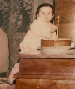 Artista a postat pe Instagram o fotografie cu ea, din copilărie, însoțită de mesajul: Vlăduța Lupău … eu, de 8 Martie... mai pun o lumânare pe tort!