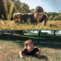 Katina Behm, căci despre ea este vorba, şi-a deschis în anul 2016 un cont de Instagram sub numele de BabyAnd TheBody (copilul şi trupul), în care postează fotografii amuzante care îl înfăţişează pe fiul ei de doar un anişor şi jumătate, imitând ipostazele sexy din fotografiile unchiului său, fotomodel.