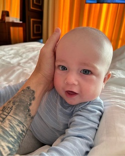 Fericitul tătic a postat o fotografie pe contul său de Instagram cu Liam, alături de mesajul emoționant: „La mulți ani, băiatul meu! Te iubim, mama&tata #6monthsold”