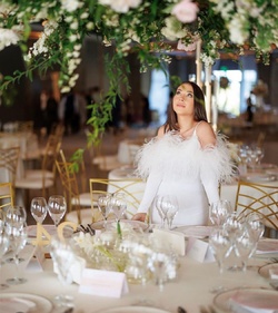 La eveniment, Nicole a schimbat trei ținute. La biserică a purtat o rochie albă, cu mâneci lungi și cu detalii din pene în partea de sus. La cununia civilă a purtat o altă rochie, tot albă, dar lungă și cu trenă. Seara la petrecere, artista a îmbrăcat o altă rochie albă, cu multe perle în partea de sus.