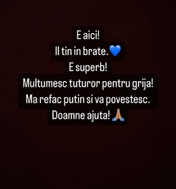 „E aici. Îl țin în brațe. E superb! Mulțumesc tuturor pentru grijă! Mă refac puțin și vă povestesc. Doamne ajută!', a scris Theo Rose pe contul ei de Instagram.