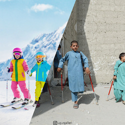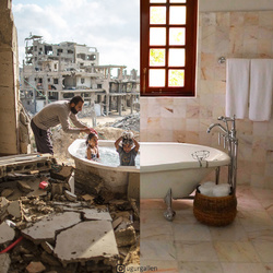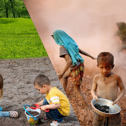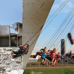 Uğur Gallenkuș, un artist digital din Istanbul, creează colaje care surprind realitatea contrastantă a celor 2 lumi în care trăiesc copiii din ziua de astăzi.