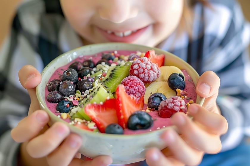 Diferența față de un smoothie obișnuit e consistența: e mai gros, se mănâncă cu lingura și poate fi decorat cu tot felul de toppinguri. Exact genul de lucru care îi fascinează pe copii vizual.