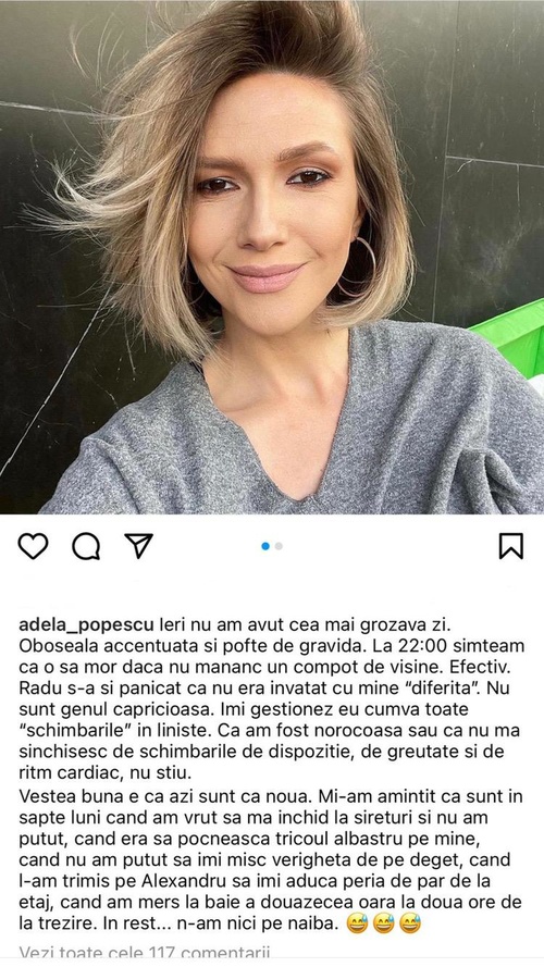 Adela Popescu, despre sarcină: “Ieri, simțeam că o să mor...”