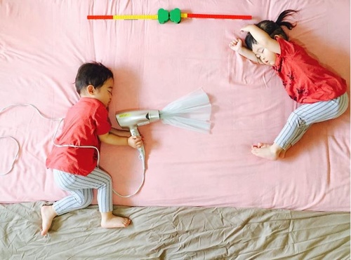 Când lumea viselor devine realitate: Fotografiile a doi frați gemeni în timp ce dorm, virale pe Instagram