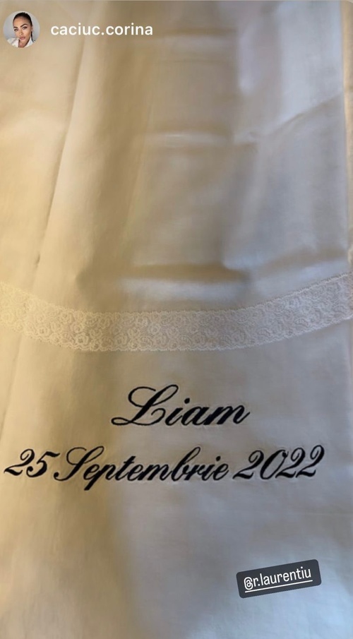 Corina Caciuc și Laurențiu Reghecampf l-au botezat pe micuțul Liam. Fotografii de la eveniment