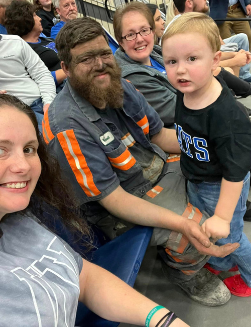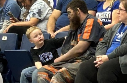 Dragostea nu acceptă scuze! A venit direct de la serviciu, cu hainele murdare, pentru a vedea meciul alături de fiul său. Fotografie virală