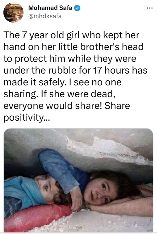 Fotografie emoționantă: O fetiță și-a protejat fratele sub dărâmăturile din urma cutremurului, timp de 17 ore