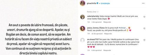 Gina Chirilă și Bogdan Vlădău s-au despărțit, după 11 ani de relație. Au împreună o fetiță de 4 ani