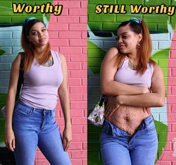 „Corpul nostru este menit să evolueze și să se adapteze schimbărilor. Corpul meu minunat a purtat 4 bebeluși binecuvântați, iar burtica de după naștere este o reamintire a întregii experiențe. Mi-a luat mult timp să o accept, să o iubesc și să o apreciez.”