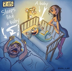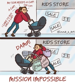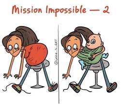 Atât de multe lucruri se întâmplă deodată – cumpărături spontane, adormirea copilului, hrănirea lui, curățenie, pregătirea mesei... însă artista se consideră o persoană optimistă care arată anxietatea și problemele mămicilor într-un mod tare amuzant.