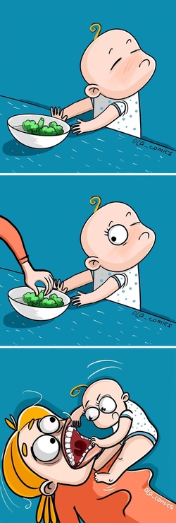 Artistul Olga Alekseeva creează benzi desenate care ilustrează perfect perioada maternității. Mămica are 2 copii care sunt, totodată, și sursa ei de inspirație. Dacă ai copii, sigur te regăsești în ilustrațiile Olgăi. Dacă nu, vei avea pur și simplu un motiv de a râde copios.